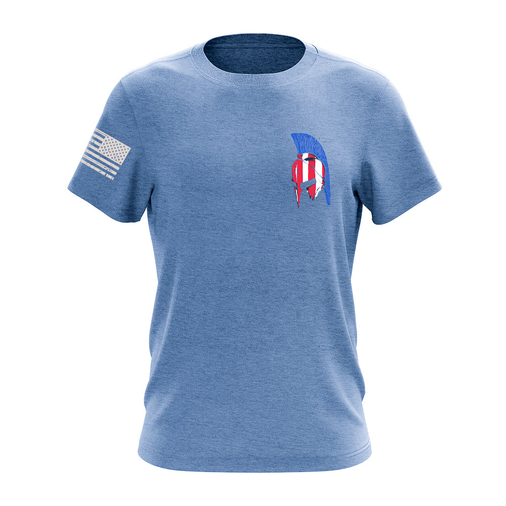 Our signature American Spartan Helmet rests on the front left of the shirt.