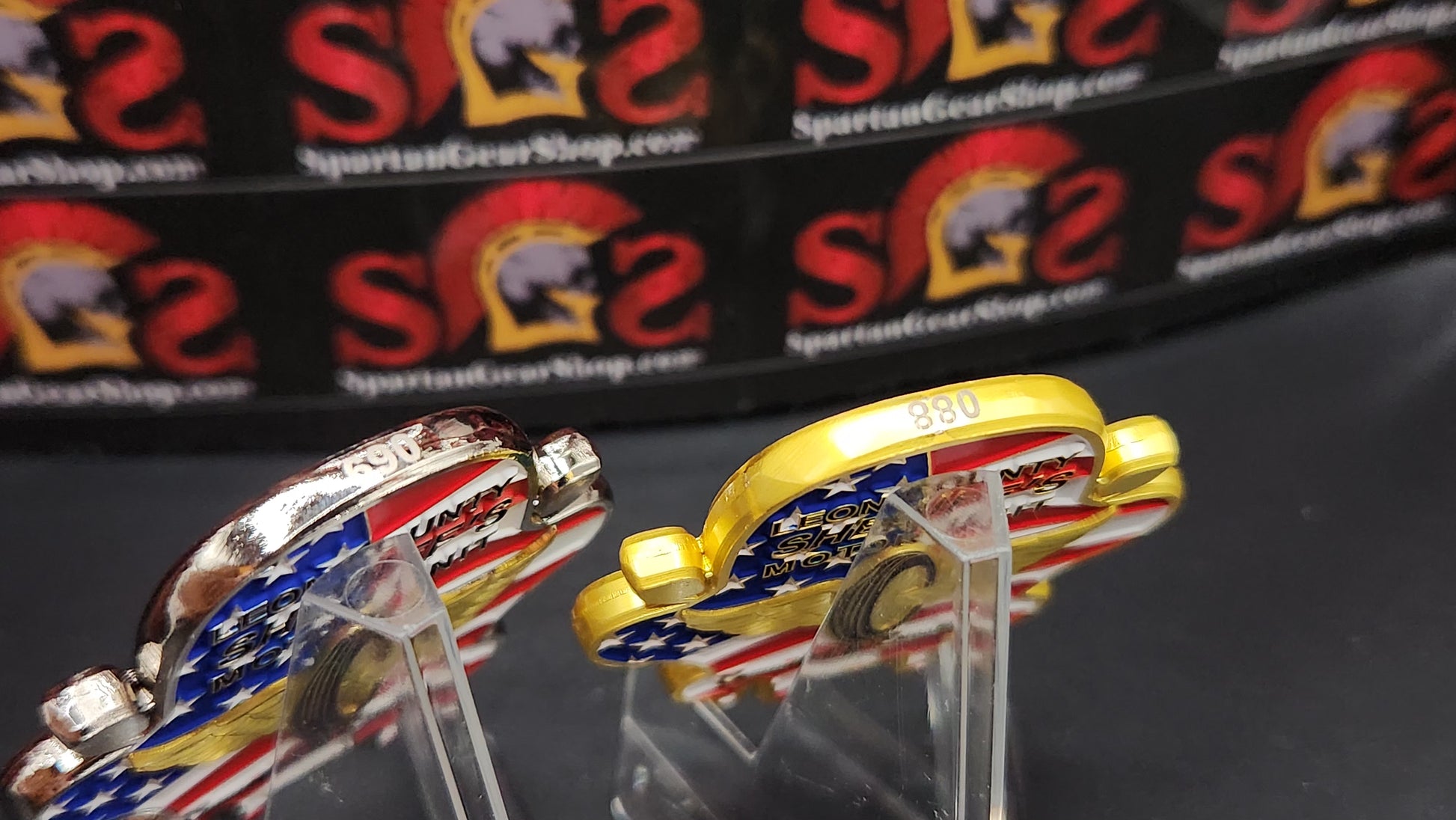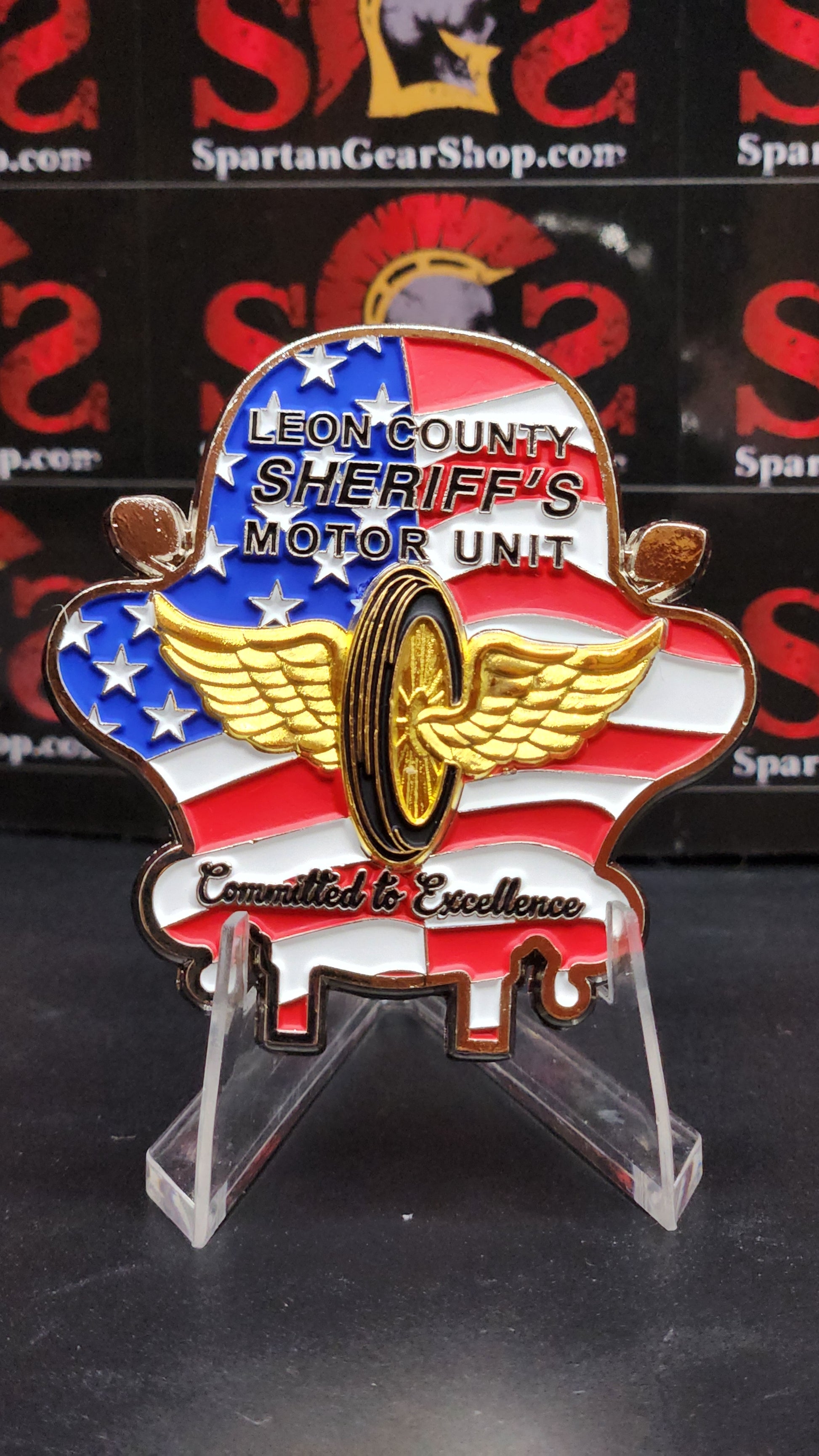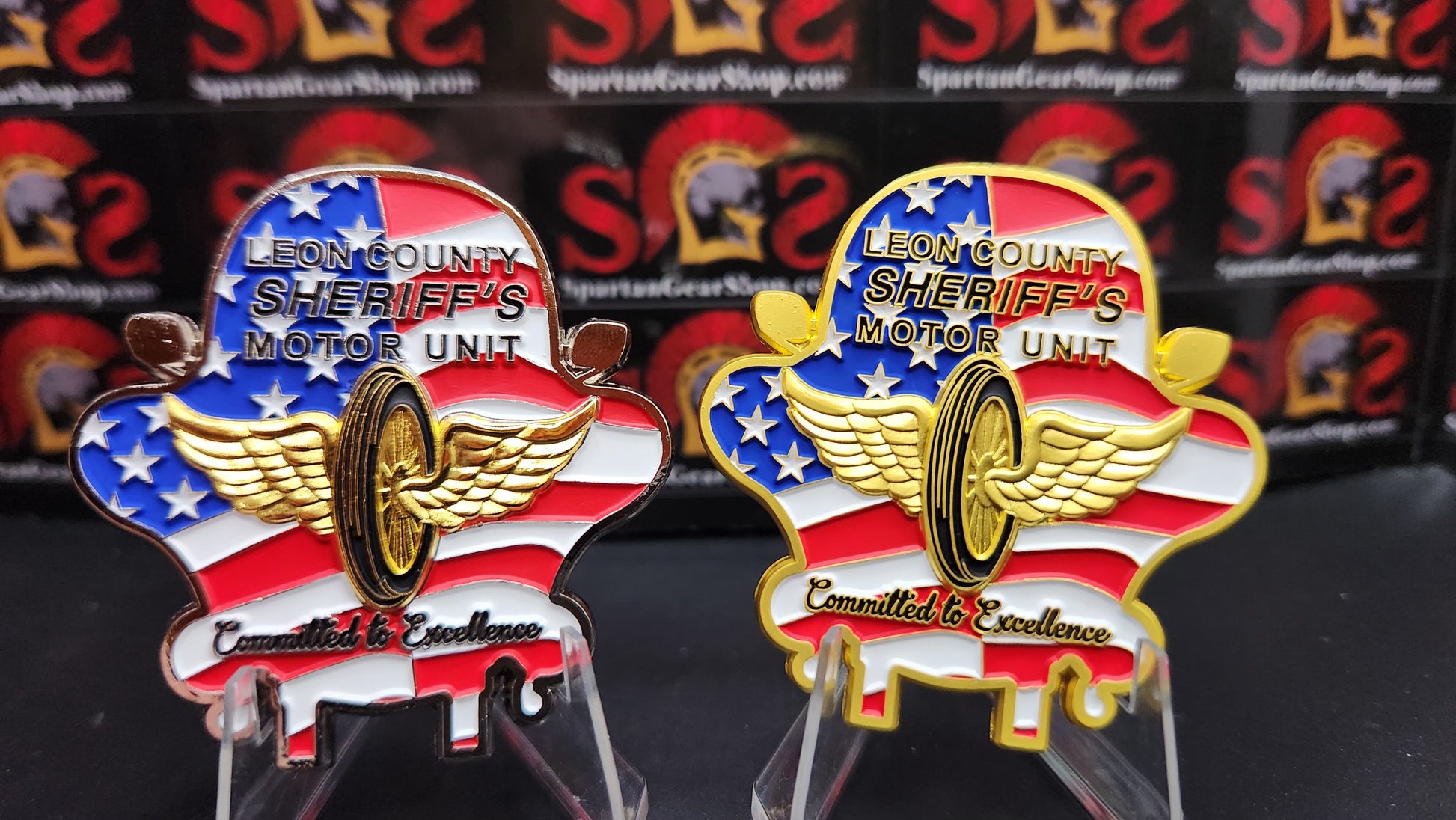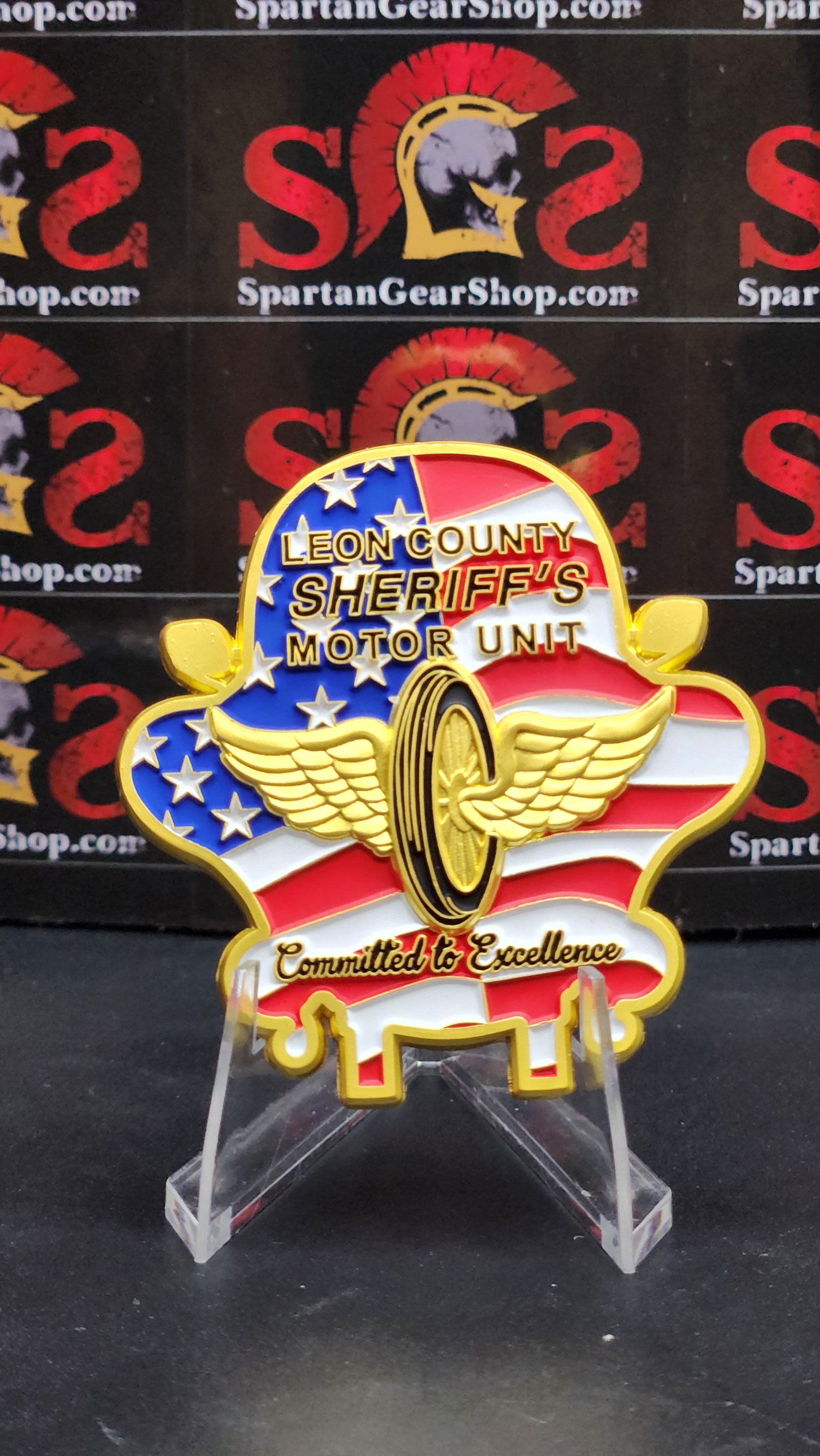 These 2 INCH coins have been commissioned by and made for LEON COUNTY FLORIDA'S MOTOR UNIT. BOTH GOLD AND SILVER ARE NUMBERED.