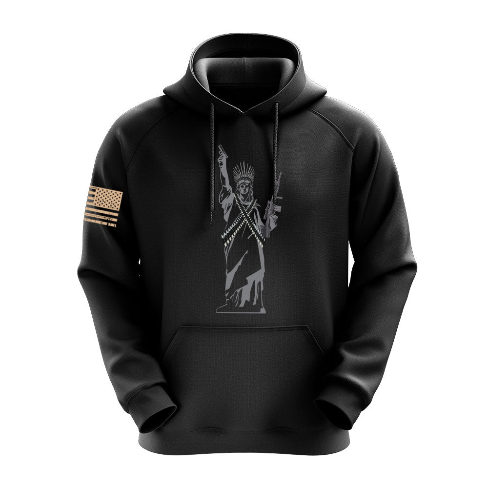 Lady Liberty sits on the front of this sweatshirt ready to fight for freedom, are you?