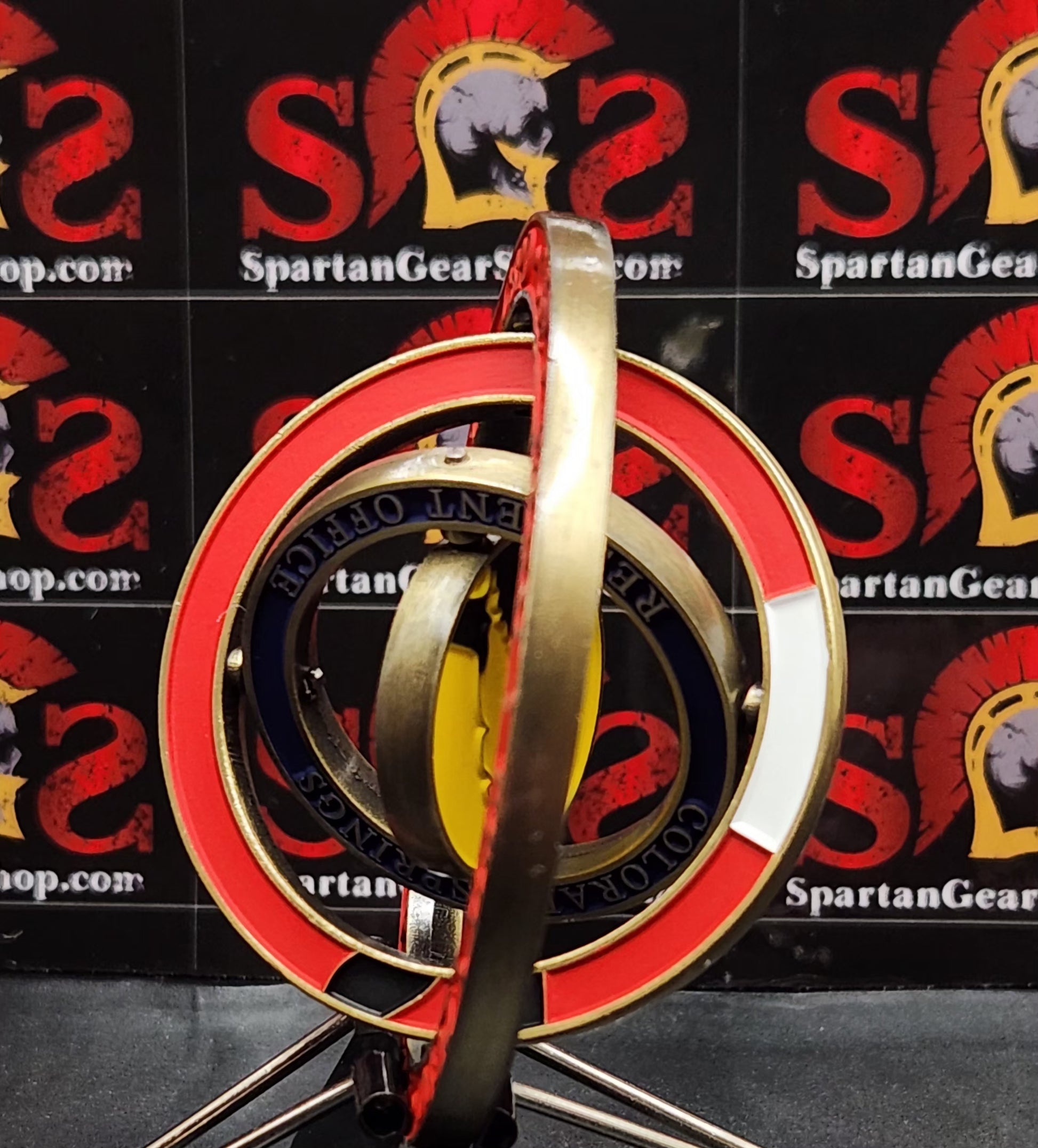 These 2.5 inch wide and 4MM THICK gyro scoping ring coins represent and were commissioned by the Drug Enforcement Administration's COLORADO SPRINGS OFFICE.